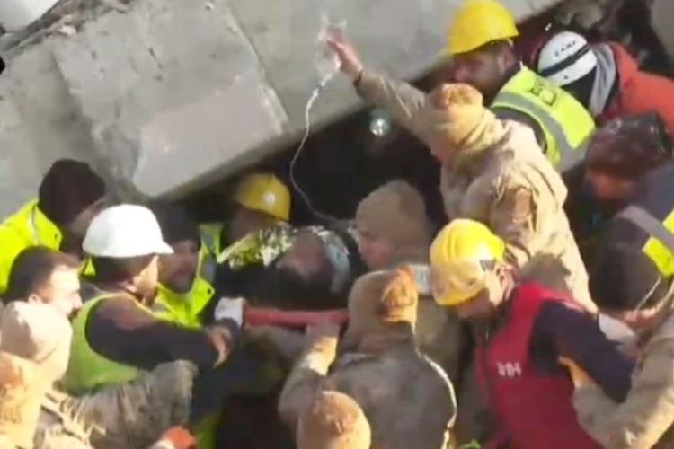 Kahramanmaraş depreminin 5. gününde 100 saat sonra Hatay’da Hikmet Yiğitbaş enkazdan sağ salim çıkarıldı.