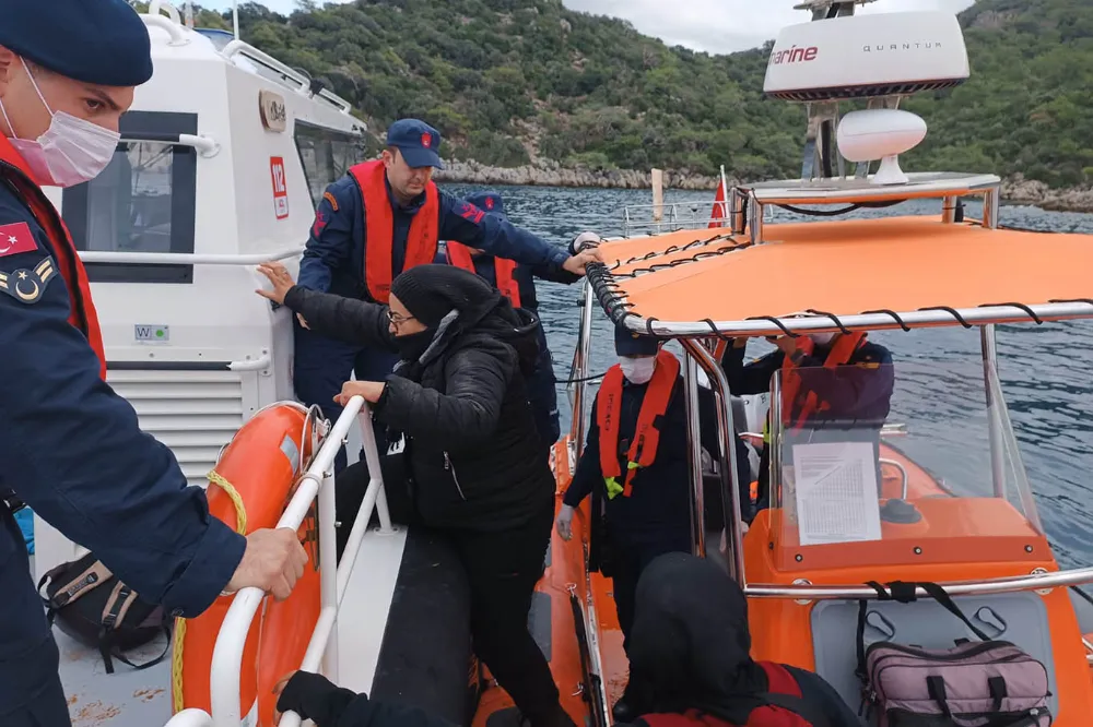 Muğla'nın Datça ilçesi açıklarında ise Yunanistan unsurlarınca geri itilen lastik bot içerisindeki 21 düzensiz göçmen kurtarıldı.