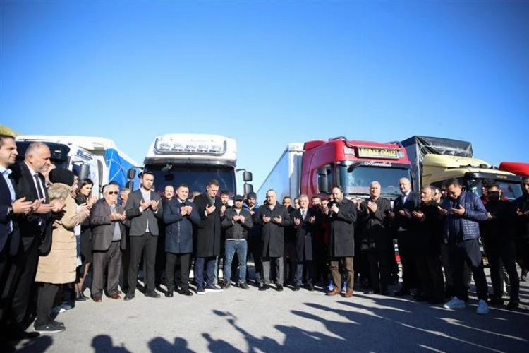 ANTALYA (İGFA) - Yardım TIR’ları yola çıkmadan önce Alanya Belediye Binası arkasında dua töreni gerçekleştirildi. Dua törenine, Alanya’da bulunan Dışişleri Bakanı Mevlüt Çavuşoğlu, Antalya Valisi Ersin Yazıcı, Alanya Kaymakamı Fatih Ürkmezer, Alanya Belediye Başkanı Adem Murat Yücel, AK Parti İlçe Başkanı Mustafa Toklu, MHP Alanya İlçe Başkanı Mustafa Sünbül, meclis üyeleri, kamu kurum müdürleri ve belediye başkan yardımcıları katıldı. Alanya Müftüsü İhsan İlhan’ın yaptığı duadan sonra yardım tırları yola çıktı.