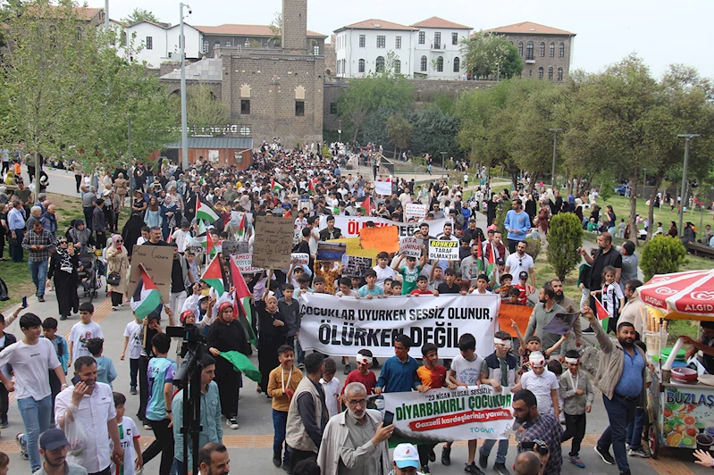 Diyarbakır merkez Sur ilçesi Hazreti Süleyman yerleşkesinde bir araya gelen ilkokul ve ortaokul öğrencileri, ellerindeki döviz ve pankartlarla Gazze'ye destek mesajları içeren sloganlar getirerek tarihi Kurşunlu Camii'ne doğru yürüyüşe geçti.