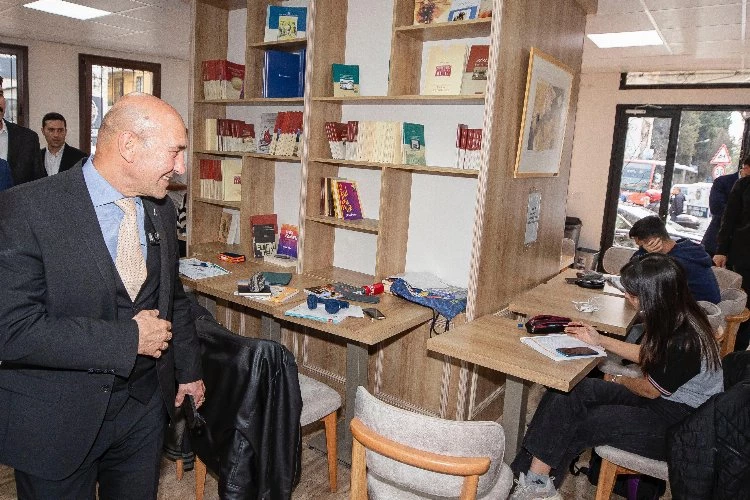 İzmir Büyükşehir Belediye Başkanı Tunç Soyer, İzmir Büyükşehir Belediyesi tarafından Buca’da açılan 100. Yıl Kitap Kafe ve Kütüphane’yi ziyaret etti. Başkan Soyer, günde bin öğrenciyi ağırlayan 7 gün 24 saat açık olan kafe ve kütüphanede gençlerle sohbet etti.