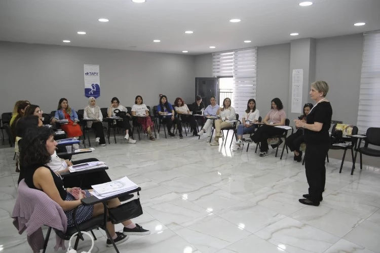Projede çalışacak ekip lideri ve saha çalışanlarının sahada etkin olabilmesi için Adana Büyükşehir Belediyesi ve Seyhan Belediyesi’nden uzman meslek elemanlarından oluşan toplam 18 katılımcı ile Seyhan Belediyesi SEYTİM’de Üreme Sağlığını Destekleyici Bilgilendirme & Danışmanlık Eğitici Eğitimi düzenlendi. 5 gün süren eğitim Adana Büyükşehir Belediyesi Kadın ve Aile Hizmetleri Dairesi Başkanı Ayten Dolançay ve Seyhan Belediyesi Kadın ve Aile Hizmetleri Müdürü Sema Turaün Yapıcı’nın açılış konuşmasıyla başladı. TAP Vakfı’ndan eğitmenler Afetlerde Üreme Sağlığı, Toplumsal Cinsiyet ve Sağlık, Çocuk Yaşta Erken ve Zorla Evlilik, Bedenimizi Tanıyalım, Temizlik ve Sanitasyon, Toplumsal Cinsiyete Dayalı Şiddet, Çocuk İstismarı ve Koruyucu-Önleyici Destek Mekanizmaları, Gebeliği Önleyici Yöntemler, Güvenli Annelik, Kadın Sağlığı Sorunları, Ev Ziyaretlerinde İletişim, Psikososyal Destek ve İletişim, Ev Ziyaretlerinde ve Dış Kurumlara Yönlendirmelerde Dikkat Edilmesi Gerekenler başlıklarında, yapılacak saha çalışmalarına yönelik danışmanlık ile ilgili atölyeler ve sunumlar gerçekleştirilerek eğitici eğitimine katılanlarla grup çalışmaları yapıldı.