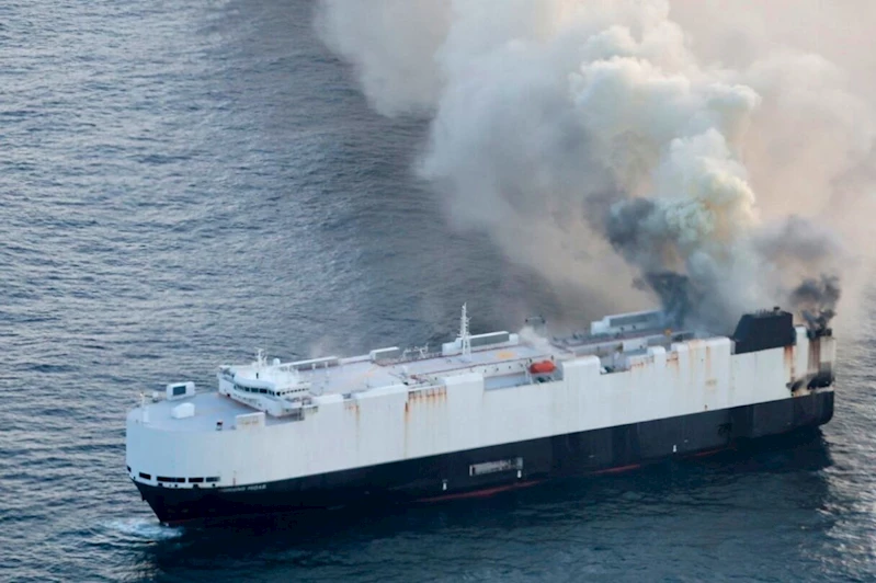İçinde 800’ü elektrikli araç olmak üzere 3 binden fazla araç bulunan yük gemisinde çıkan yangının, 24 saatten uzun süredir devam ediyor.