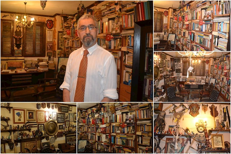 Tuncer Aziz Pekören, İLKHA muhabirine " Demhane" ismini verdiği mekânında yaklaşık 10 bin kitabı olduğunu söyledi.