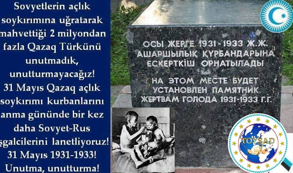 ŞEHİTLERİMİZİ RAHMETLE ANIYORUZ. Komünist Ruslar tarafından KAZAK ,TÜRK Soydaşlarımıza yapılan en büyük zulümlerden birini de şüphesiz Kazak Bozkırında yaşayan Türkler gördü. Komünist SSCB döneminde 1920'lerin başlarında pek çok Kazak Türkçü fikir adamı düşünce suçuyla kurşunlandı, asıldı, katledildi. 2. Dünya Savaşı döneminde ise bütün bir Kazak toplumunun tamamına bir soykırım gerçekleştirildi. Çetin kış şartlarında ve tarım yapılamayan bozkırlarda yaşayan Kazak halkının neredeyse tüm hayvanlarına ve kısıtlı tarım mahsulüne el konuldu, resmi rakamlara göre en az 4 milyon Kazak, 4 milyon Türk evladı açlığa terk edilip öldürüldü. O dönemin Kazak nüfusunun yarısından fazlası bu korkunç soykırımda can verdi. Rusların, komünizmin Türklüğe yaptığı bu korkunç zulmü, baskıyı, yok etme çabasını unutmayacağız! Bu katliamlarda, kıtlıklarda zorla canından edilen Kazak soydaşlarımızı saygı ile anıyoruz. Ruhlarınız şad olsun, bizler size yapılan bu zulümleri... UNUTMADIK...!!!UNUTMAYACAĞIZ....! UNUTTURMAYACAĞIZ....!