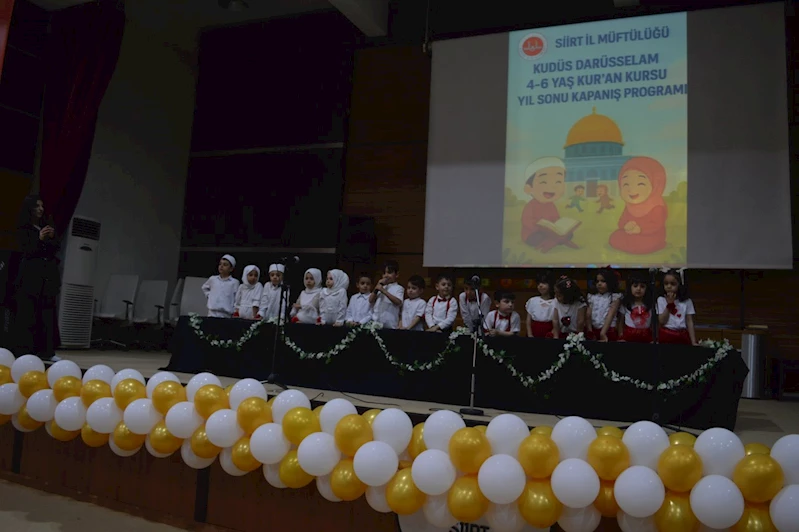 Siirt İl Müftülüğüne bağlı Kudüs Darüsselam 4-6 Yaş Kur’an Kursu öğrencileri, yıl boyunca aldıkları eğitimin ardından mezuniyet sevincini yaşadı.
