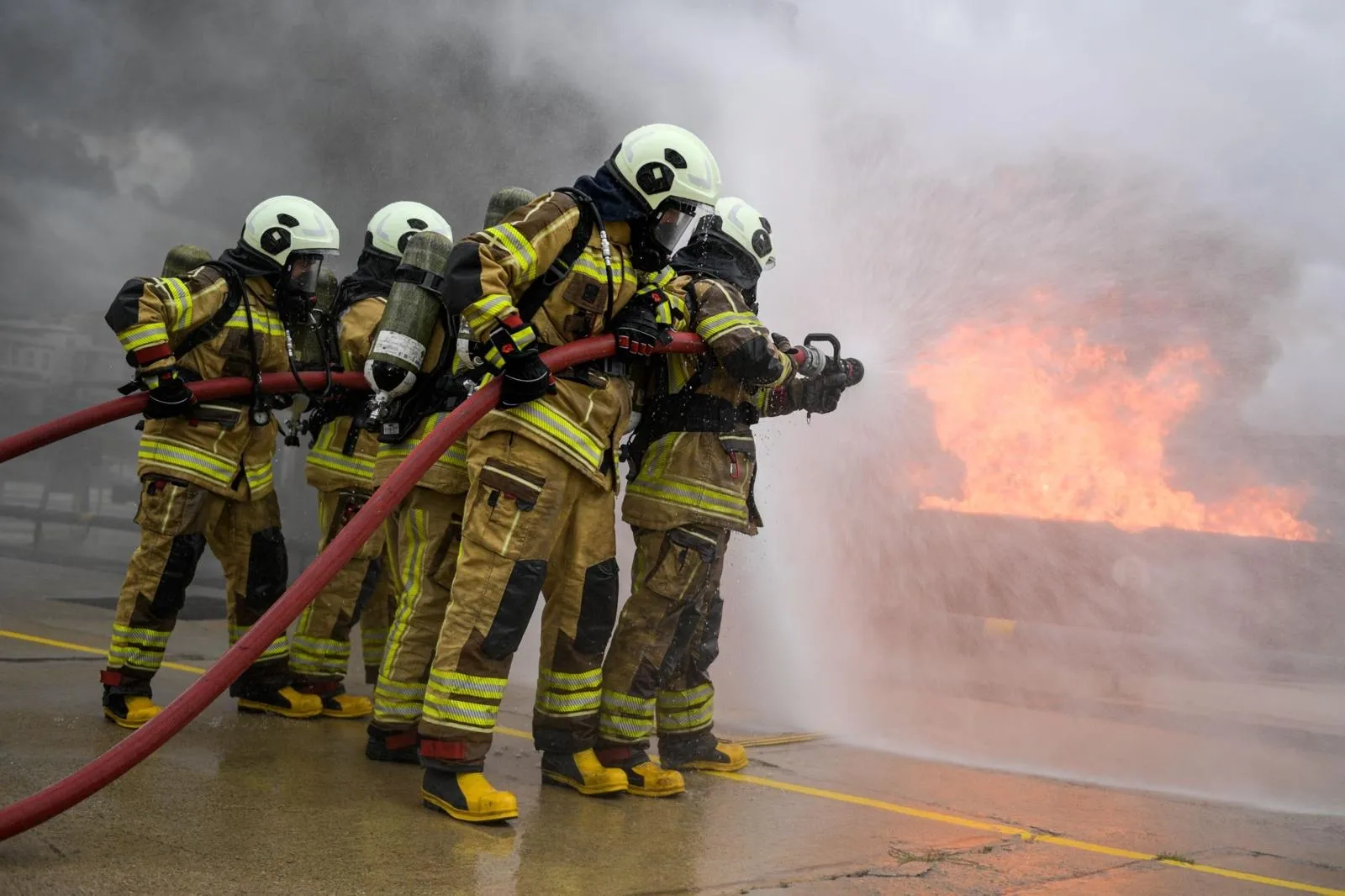 İzmir İtfaiyesi ekipleri ile düzenlenen tatbikatta, çok amaçlı kapalı alan yangın ve arama kurtarma eğitim simülasyonunda tatbikat düzenlendi. Senaryo gereği kapalı alanda çıkan yangın nedeniyle içeride birileri mahsur kaldı. Yine senaryo gereği yaralıların yardım çığlıkları yükseldi. Panik ve korkunun hakim olduğu alanda siren sesleri insan sesine karıştı. İtfaiye ekiplerinin yangına müdahalesinin ardından sağlıkçılar yaralıları alandan çıkardı.