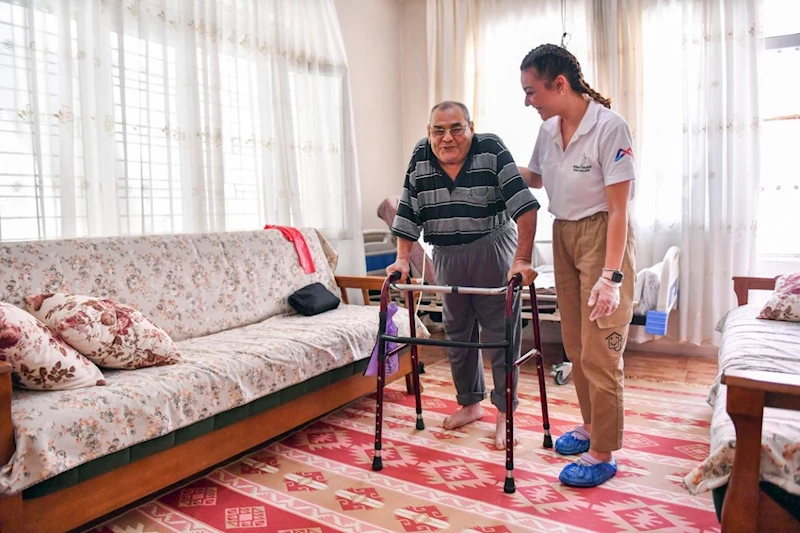Verdiği hizmetle yatağa bağımlı birçok hastanın ilk adımlarını yeniden atmasını sağlayan Evde Sağlık ve Bakım ekipleri, doktorların ‘Artık yürüyemezsin’ dediği 69 yaşındaki Bahattin Aslan’ın da elinden tuttu. Tozkoparan Mahallesi’nde yaşayan ve 2018 yılında geçirdiği 2. bel fıtığı ameliyatı sonrası yatağa bağımlı hale gelen ve ayağını bile kaldıramayan Bahattin Aslan, daha önce farklı yerlerde fizik tedavi hizmeti alsa da ilerleme kaydedemeyince, çareyi Büyükşehir Belediyesi’nde aradı. Yaklaşık 1 yıl önce Büyükşehir Belediyesi’ne başvuran Aslan; fizyoterapistlerin evde özenle verdiği fizik tedavi ve rehabilitasyon hizmeti ile yeniden ayağa kalktı. Aslan, şu an walker desteği ile evin içinde yürüyebiliyor ve kendi kişisel ihtiyaçlarını karşılayabiliyor. Kış aylarında merkezde, yaz aylarında ise Aladağ’da bulunan yayla evine giderek fizik tedavi hizmetini sürdüren ekipler, Aslan’ın çocukları gibi olmuş.Aslan’ın yürüyebilmesi sonrası hem Bahattin Aslan, hem de 5 yıl boyunca ona bebek gibi bakan eşi İmren Aslan’ın mutluluğu görülmeye değer."