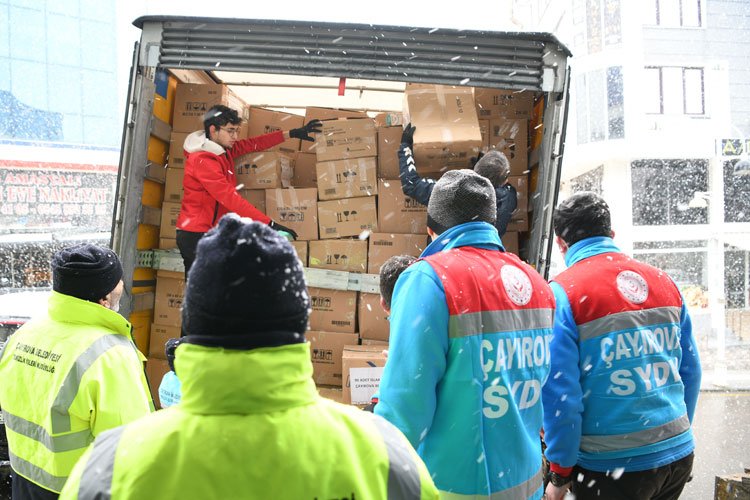 Deprem sonrası bölgeye arama kurtarma timi gönderen ve akabinde yardım kampanyası başlatan Çayırova Belediyesi, vatandaşların akın ettiği yardım kampanyasında toplanan malzemeleri belediye personeli ve gönüllü vatandaşlarında yardımıyla gruplara ayırarak koli haline getirdi.