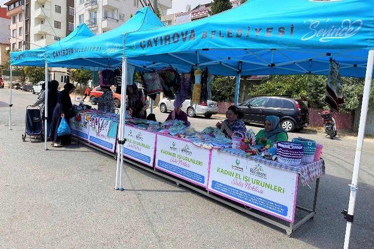 Çarşamba Pazarı girişinde kurulan tezgahta, el emeği göz nuru ürünlerini, Çayırovalılarla buluşturan kadınlar, uygulamanın hem maddi hem de manevi olarak kendilerine katkıları olduğunu dile getiriyor.