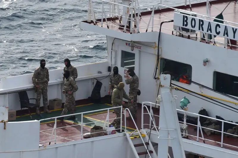 Rusya’nın “hayalet filosu”na ait olan ancak Benin bayrağı taşıyan bu çok kimlikli geminin, Rusya tarafından “dron fırlatma platformu” olarak kullanılmış olmasından şüpheleniliyor. (İLKHA)