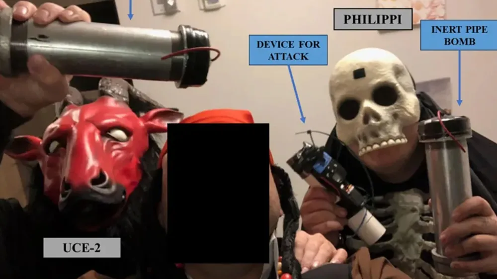 Adalet Bakanlığı, Philippi'nin tutuklandığında aracın arkasında olduğunu ve dronun çalıştırıldığını söyledi. Adalet Bakanlığı, dronun yanında silahlı bir patlayıcı olduğunu da sözlerine ekledi.