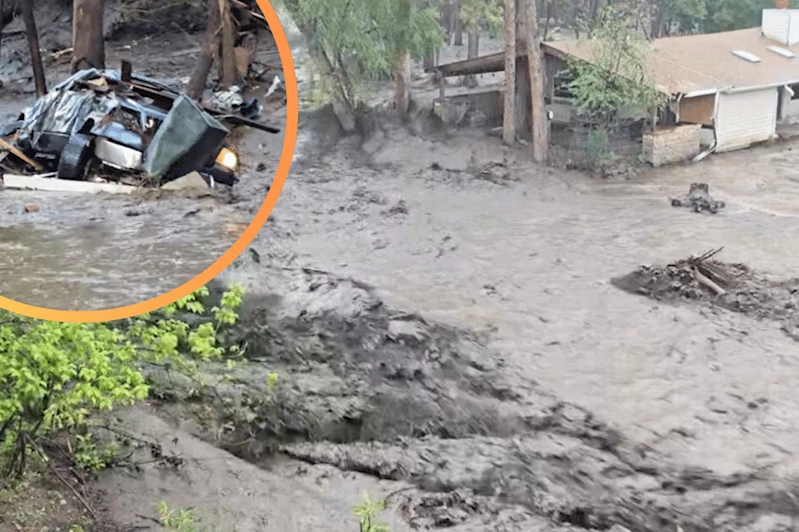 New Mexico'nun güneyinde etkili olan muson yağmurları, Ruidoso köyünde sele yol açtı.