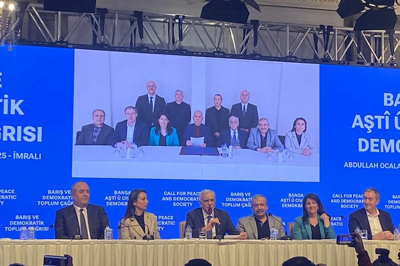 DEM Parti Heyeti, Abdullah Öcalan ile yaptığı üçüncü görüşmenin ardından İstanbul Taksim'deki bir otelde basın toplantısı düzenledi.