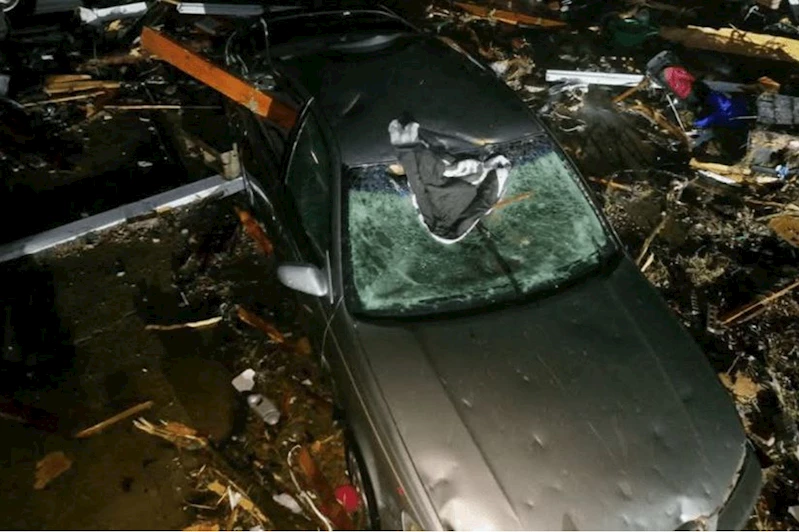 Arkansas, Illinois, Indiana, Missouri ve Mississippi eyaletlerinde etkili olan şiddetli fırtına ve hortum, elektrik hatlarını devirdi, tren vagonlarını raydan çıkardı ve araçları savurdu. Evlerin çatıları uçarken, molozlar ortalığı savaş alanına çevirdi.