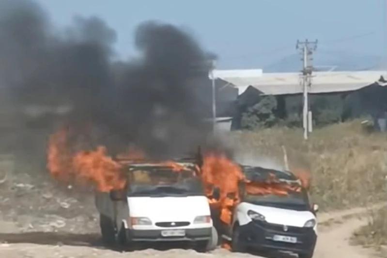 Edinilen bilgilere göre, iki araçta bilinmeyen bir sebepten yangın başladı.