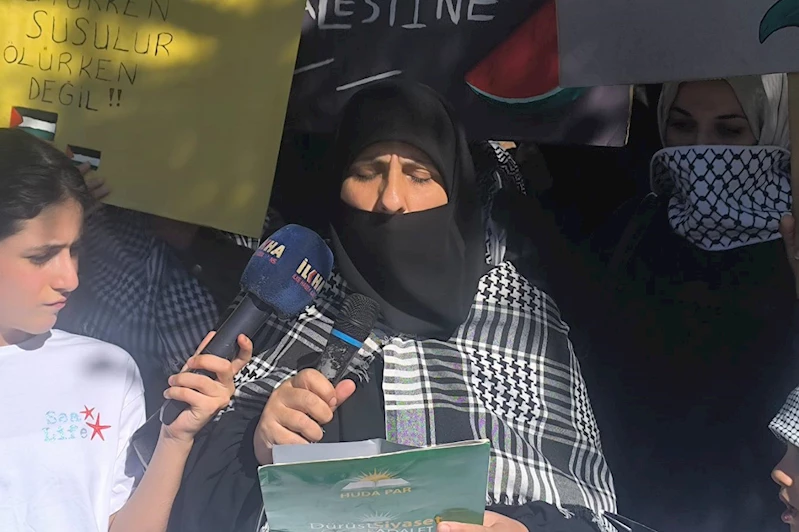Yıldırım, konuşmasında, "Bugün burada, yalnızca kadınlar olarak toplandık. Çünkü bizler, dünyanın neresinde olursa olsun, bir çocuğun gözyaşını yüreğinde hisseden anneleriz. Çünkü bizler, mazlumun acısını evladının acısı gibi gören bacılarız. Çünkü bizler, Gazze'deki bir annenin, yavrusunu kucağında şehit verişine sessiz kalamayacak kadar büyük bir vicdana sahibiz. İşgalci siyonist İsrail, yıllardır çocukları öldürüyor, anneleri evlatsız bırakıyor, kadınları çaresizliğe mahkûm ediyor. Bizler, bu zulme susan değil, haykıran kadınlarız" dedi.