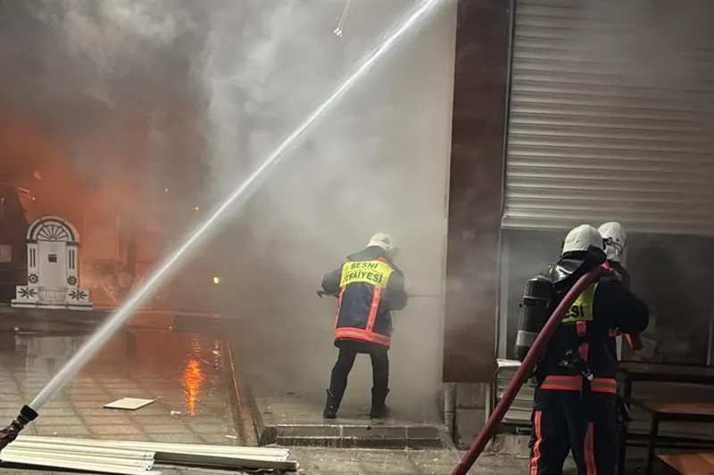Yangın, Yeni Besni Mahallesi Şire Pazarı içerisinde meydana gelen yangın kontrol altına alınırken alevlerin diğer iş yerlerine sıçramadan söndürüldü.