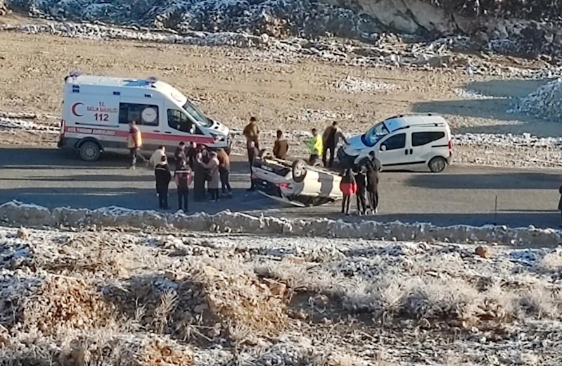 Çarpışmanın şiddetiyle kontrolden çıkan araçlardan biri ters durdu.