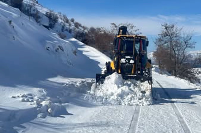 İlçede dün gece etkili olan kar yağışı nedeniyle ulaşıma kapanan köy yollarının açılmasına yönelik iş makinalarıyla çalışma devam ediyor.