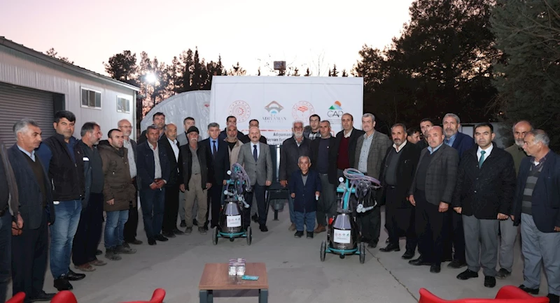 Ekonomisinin büyük bir bölümü tarım ve hayvancılığa dayanan Adıyaman’da hayvancılığı geliştirmek ve süt üretimindeki kalite ve miktarın artırılarak Adıyaman'ın ekonomisine daha fazla katkı sağlanması amacıyla süt üreticilerine Vali Varol, katılımlarıyla süt sağım makineleri ve yem kırma makineleri dağıtıldı.