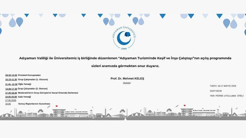 “Adıyaman Valiliği ile Üniversitemiz iş birliğinde düzenlenen bu önemli çalıştayın açılış programında sizleri aramızda görmekten onur duyarız.”