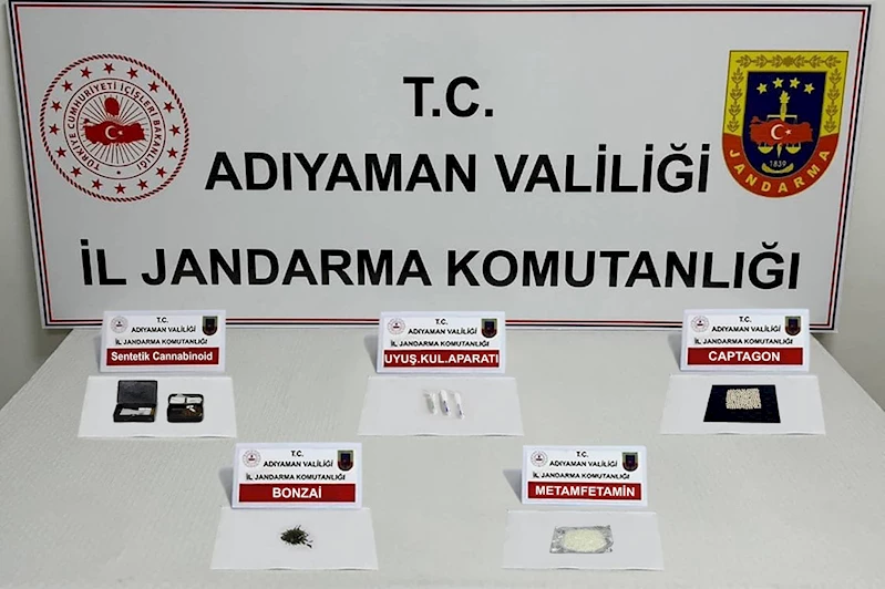 Operasyonda, 215 gram sentetik kannabinoid hammaddesi, 95 adet captagon, 12 gram bonzai, 9 gram metamfetamin ve 3 adet uyuşturucu aparatı ele geçirildi.