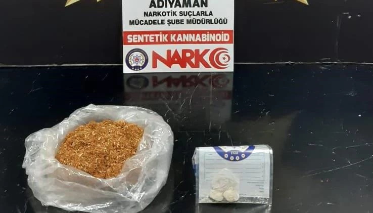 Adıyaman Cumhuriyet Başsavcılığı tarafından uyuşturucu satıcılarına ve kullananlara yönelik yürütülen soruşturma kapsamında İl Emniyet Müdürlüğü'ne bağlı Narkotik Suçlarla Mücadele Şube Müdürlüğü ekipleri tarafından yapılan baskınlarda 104 gram sentetik kannabinoid ham maddesi ve 145 gram sentetik kannabinoid enjekte edildiği değerlendirilen tütün ele geçirildi. Ele geçirilen uyuşturucular muhafaza altına alınırken A.H.G, M.E.O, S.K, B.C., gözaltına alındı. Gözaltına alınan şüpheliler sorgulanmak üzere emniyete götürüldü.