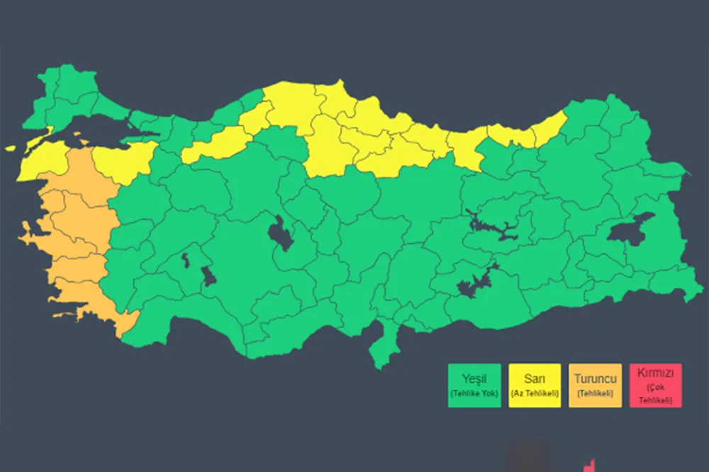 15 Ocak Pazartesi günü, akşam saatlerinden sonra; İzmir, Aydın, Manisa, Muğla ve Balıkesir’in batı ilçelerinde çok kuvvetli ve şiddetli; Çanakkale’nin güneyi ile zamanla Balıkesir, Bursa çevrelerinde kuvvetli sağanak ve gök gürültülü sağanak yağış bekleniyor.