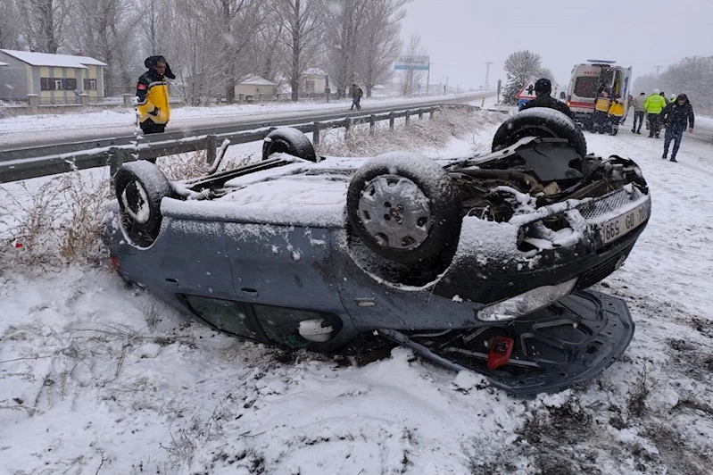 Ağrı merkeze bağlı Anakaya köyü yakınlarında buzlanan yolda yine sürücüsü öğrenilemeyen 04 OG 599 plakalı bir otomobilin takla atması sonucu 2 kişi hafif şekilde yaralandı.