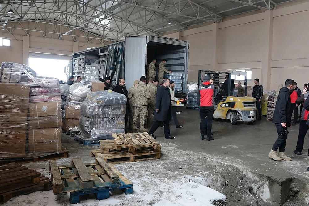 Kahramanmaraş ve 10 ilindeki depremin ardından Ağrı merkez ve ilçelerinde yardım kampanyaları ile toplanan malzemeler 8 tır ile 1 kamyon yola çıktı.