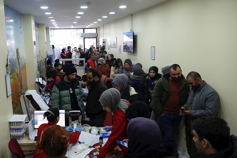 Sabah saatlerine doğru Kahramanmaraş merkezli meydana gelen depremin ardından yapılan çağrılardan sonra Ağrılılar Kızılay Ağrı Şubesi Kan Verme Merkezi'ne akın etti.