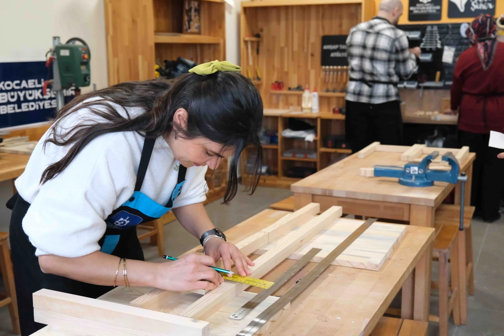 Kocaeli Büyükşehir Belediyesi bünyesinde düzenlenen ahşap atölyesi, kadınların el becerilerini geliştirmelerine imkân sunuyor.