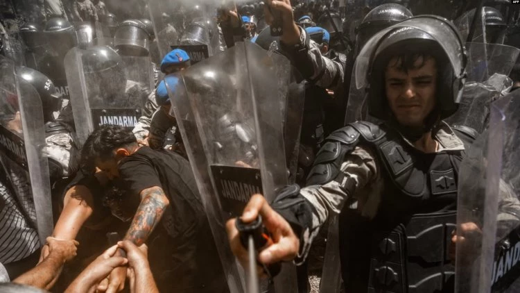 Jandarma eylemcilere biber gazı, basınçlı suyla müdahale etti.