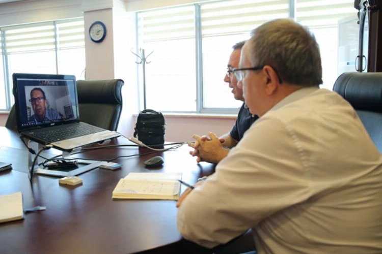 Erdoğan DEMİR / EDİRNE (İGFA) - Trakya Üniversitesi Rektörü Prof. Dr. Erhan Tabakoğlu ile Almanya’nın Lörrach kentinde bulunan Baden-Wuerttemberg Cooperative State Üniversitesi Rektörü Prof. Dr. Gerhard Jaeger, telekonferans yoluyla bir görüşme gerçekleştirerek, iki üniversite arasındaki ilişkilerin somutlaştırılması kapsamında fikir alışverişinde bulundu.
