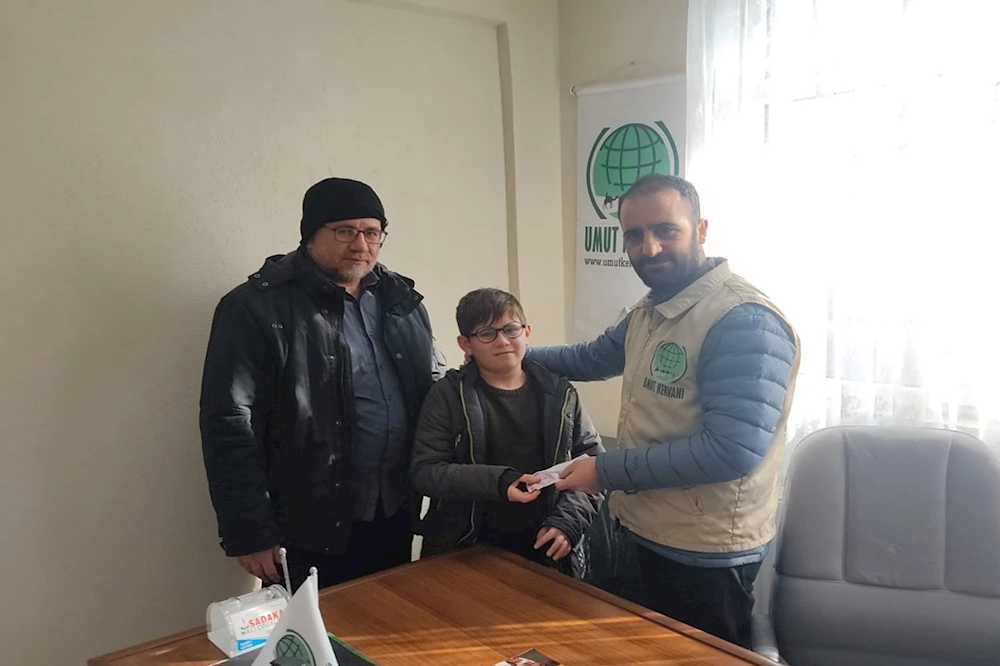 Hayal ettiği akılı saati almak için okul harçlıklarını biriktiren Muhammet Sosan, biriktirdiği parayı Ağrı Umut Kervanı Derneğine teslim ederek depremzedelere soba almalarını istedi.