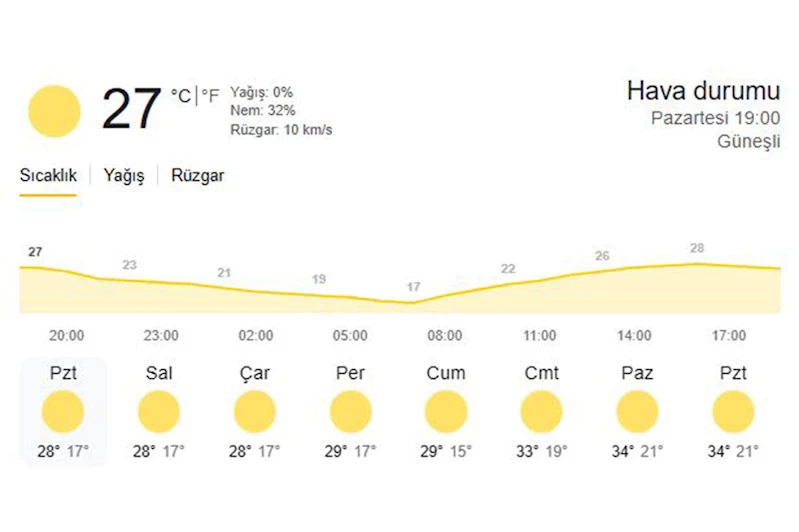 25 Ağustos ile başlayan haftada Konya'da gündüz saatlerinde sıcaklıkların 35 dereceye kadar çıkması bekleniyor. Geceleri ise hava biraz serinleyecek ve sıcaklıklar 17–19 derece civarına kadar inecek.