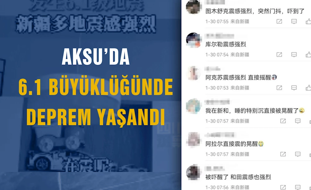 Doğu Türkistan'ın Aksu vilayetine bağlı Şayar kentinde 6.1 büyüklüğünde deprem meydana geldi.