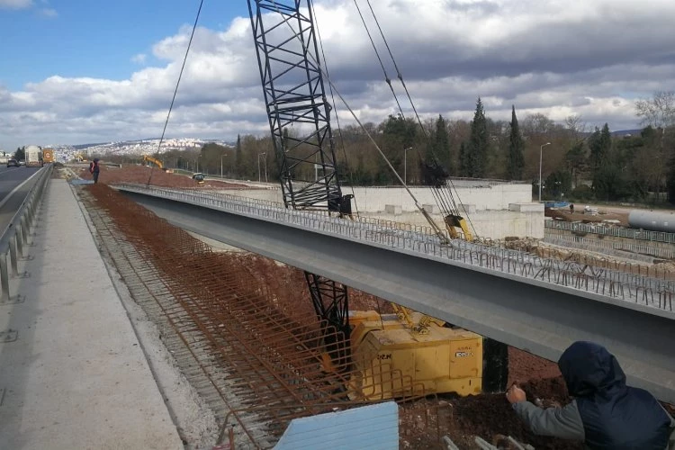 Kocaeli'de Köseköy Koridoru Alikahya Stadyum bağlantı yolunda kuzey yan yol köprüsü ve D-100 köprüsü İstanbul istikameti kiriş montajları yapıldı.