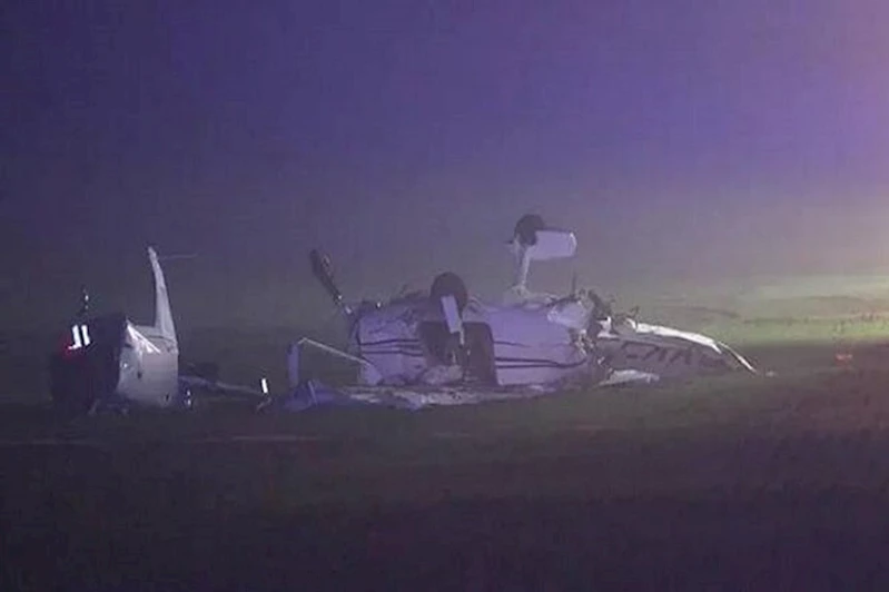Polis yetkilileri, dört koltuklu Cessna C-172 tipi uçağın iniş anında düştüğünü açıkladı.