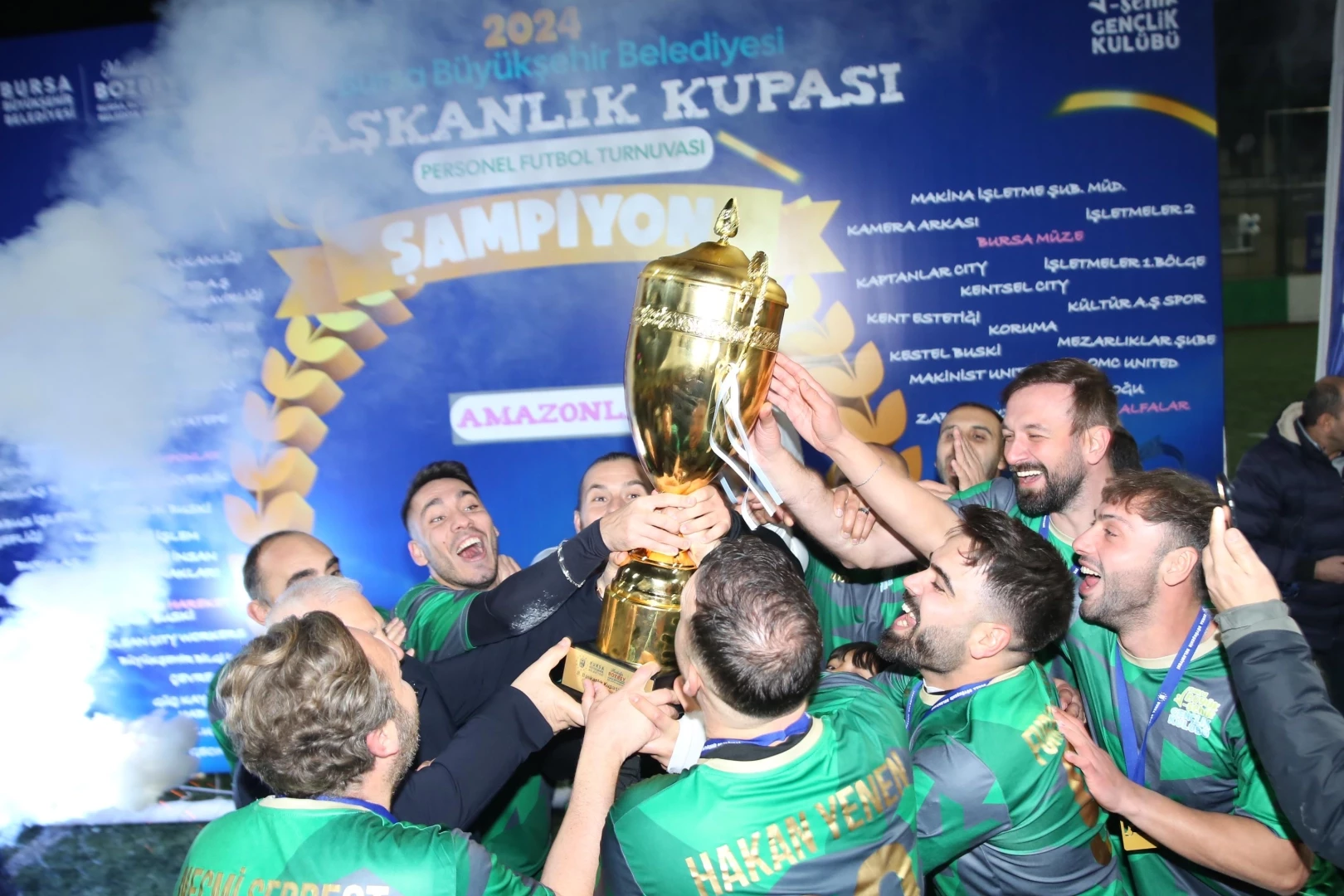 BURSA (İGFA) - Bursa’da kültürden sanata, altyapıdan ulaşıma kadar birçok alanda çalışmalarını sürdüren Büyükşehir Belediyesi, personelin motivasyonunu artırmak amacıyla sosyal faaliyetlerini de sürdürüyor. Bu kapsamda Gençlik ve Spor Hizmetleri Dairesi Başkanlığı aracılığıyla 14 Ekim-26 Kasım tarihleri arasında ‘8. Başkanlık Kupası Personel Futbol Turnuvası’ düzenlendi. Bursa Büyükşehir Belediyesi ve tüm iştiraklerin katılımıyla Merinos Stadyumu’nda yapılan turnuvada, 64 erkek ve 6 kadın takımı olmak üzere toplam 70 takım kıyasıya mücadele etti.