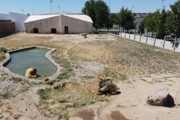 Bacak, Büyükşehir Belediyesi Hayvanat Bahçesi’nde 153 türde 1600 hayvana bakım ve besleme yaptıklarını belirterek, “Hayvanat bahçemiz 181 bin metrekare alana kurulu 153 türden bin 600’e yakın hayvanı barındırmaktadır. Kayseri’mizde de şu an havalar sıcak, 30-35 derece aralığında seyrediyor. Bununla ilgi de hayvanlarımızın sağlıklarını koruma adına çeşitli aktiviteler yapıyoruz, şu anda da ayı barınağımızın önündeyiz. Ayılarımıza haftanın belirli günlerinde ve belirli saatlerinde sağlıklarını sıkıntıya sokmayacak derecede soğuk meyve suyu kokteyli veriyoruz. Gördüğünüz gibi havuz başında şu an ayılarımız soğuk meyve kokteyli keyfi yapıyorlar. Hayvanlarımız gayet rahatlar, huzurlular sadece ayılar için değil aslanlarımız, kaplanlarımız, flamingolar, su kuşları diğer hayvanlarımızın da havuzları ve serinletme sistemleri var. Misafirlerimiz gayet sağlıklılar” şeklinde konuştu.