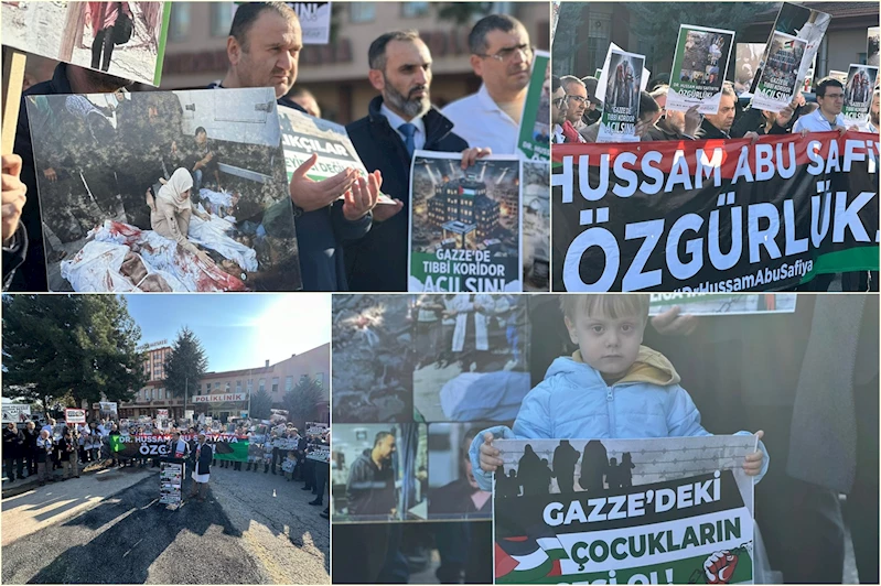 "Dr. Hussam Abu Safiya’ya özgürlük!" diyerek basın açıklamasını okuyan Karakaya, "Selam olsun inandığı yoldan geri dönmeyen Gazze halkına ve vicdanlı insanlara! Bizler; aziz memleketimizin dört bir yanında görev yapan hekim ve sağlık çalışanları olarak Gazze’deki sağlık krizini bir yılı aşkın süredir, büyük bir endişe ve öfke ile takip etmekteyiz. Yarım asırdan daha uzun süredir işgal altında olan Filistin topraklarının özgürlük savaşının ve teröristlerin katliamının şahitliğini yapmaktayız. Bugün tekrardan Aksa Tufanı harekâtından bugüne israil terör rejimin yaptığı zulmü haykırıyoruz. Kalbimizle buğz ettiğimiz yılları geride bırakmış artık dilimizle düzeltme çabamız daha da gürleşmiştir. Elbette sonunda Mescid-i Aksa’da namaz kılacak şekilde elimizle o zulmü durduracağız. Buradan bu zulmün yarını beklemeden daha fazla çocuk katledilmeden durması çağrısını yapıyoruz. Dünyayı koruduğunu söyleyen kuruluşların işlevsizliğini tekrar dillendiriyoruz. Unutmamak, zihnimize ve yüreğimize gerçekleri iyice işlemek için tekrarlıyoruz. 20 bini çocuk, 12 bini kadın 45 binden fazla şehit veren Gazze halkı daha dün evlerinden güvenli bölge vaadiyle sürülerek toprakları tarumar edilip ele geçirilmişken bizler evimizde rahatça oturamıyoruz. İşgalci terör rejimi evleri, okulları hatta hastaneleri vurmaktan çekinmiyor. İnkâr ettiği yıkımları bugün gülerek gerçekleştirmeye, haklı olduğu fikrini kabul ettirmek için çalışmaya devam ediyor. Yıllardır Filistin topraklarında yaptığı işgali meşrulaştırma çabasını her gün kat be kat arttırıyor. Bu sebeple bizler olduğumuz yerde saymaya devam edemeyiz. Gün geçtikçe çevresindeki tüm ülkeleri bombalarken şu an yaşadığımız topraklara ulaşma planı yapmadığını hangi cehalet ifade edebilir! Hangi çılgın bize zincir vurmaya cesaret edebilir düsturunu hatırlatarak enginlere sığmayıp taşacağız." diye belirtti.