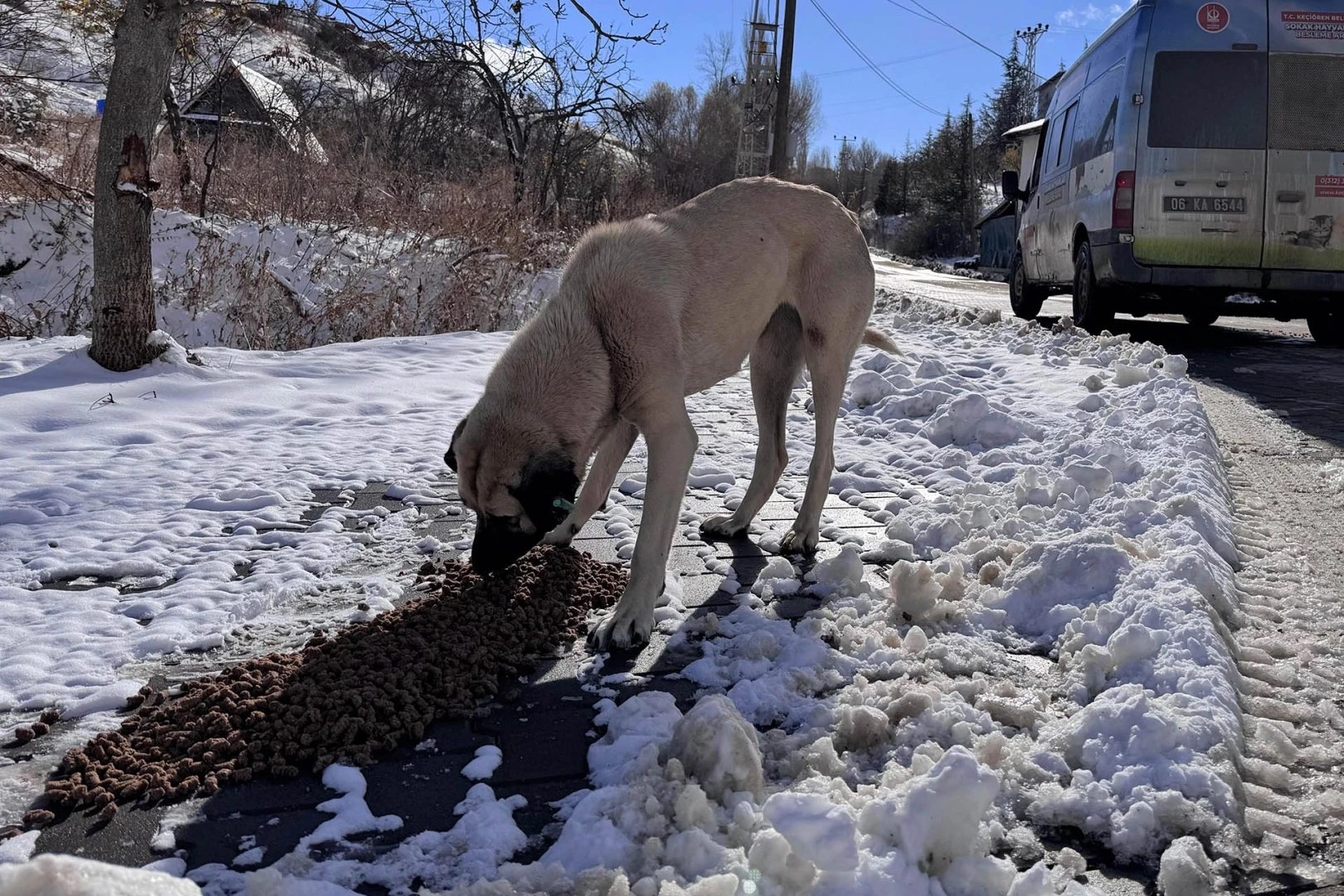 Ankara'nın Keçiören ilçesinde hakim olan yoğun kar yağışı ile birlikte teyakkuza geçen Keçiören Belediyesi, karla mücadele çalışmalarının yanında sokak hayvanlarını da unutmadı.