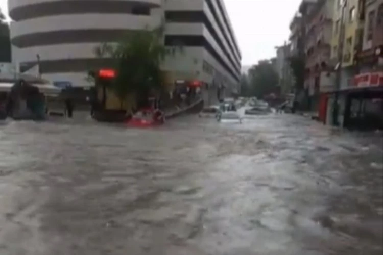 Kuvvetli sağanak dolayısıyla rögarlar taşarken, cadde ve sokaklar göle döndü. Ev ve iş yerlerini de su bastı.