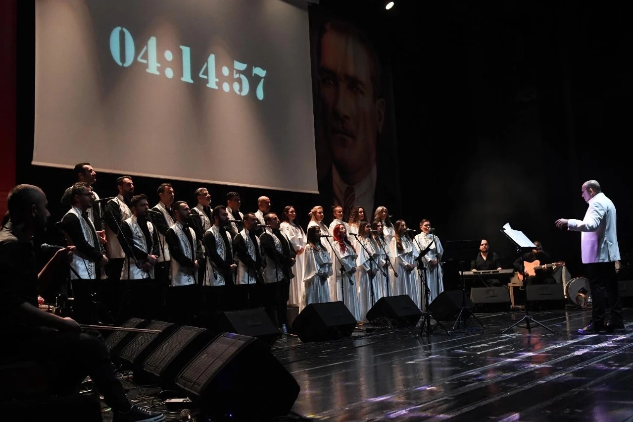 Konserde, Adıyaman’da yıkılan İsias Otel’in enkazında hayatını kaybeden, Kuzey Kıbrıs Türk Cumhuriyeti Gazimağusa Türk Maarif Koleji kız ve erkek voleybol takımı öğrencileri anıldı. Koro, ‘Mağusa Limanı’ adlı Kıbrıs türküsünü seslendirirken, depremde yaşamını yitiren öğrencilerin fotoğrafları sinevizyon eşliğinde sahneye yansıtıldı. Depremzedelere adanan ‘Derdin Ne Hatay’ adlı eser seslendirildi. Esere, eşlik eden görüntüler, depremle özdeşleşen sahneleri izleyicilere aktardı.