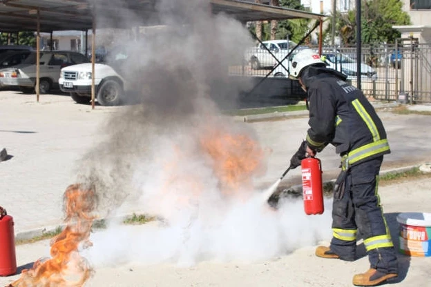 Antalya Büyükşehir Belediyesi itfaiye ekipleri, ilçe hizmet birimlerinde görevli çalışanlara yönelik yangın eğitimlerini sürdürüyor.