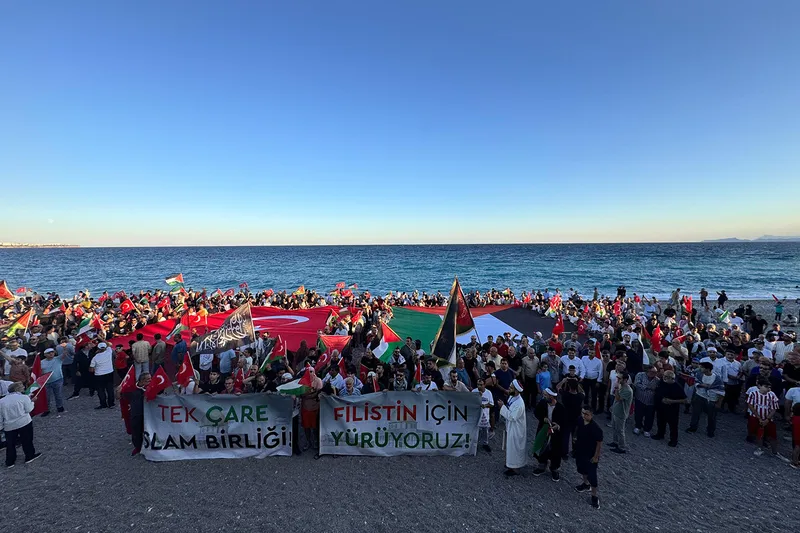 Durmaz yaptığı açıklamada şunları kaydetti: “Antalya’da hemşerilerimizin yoğun katılımıyla gerçekleşen ‘Gazze Kararlılık ve Sumud’a Selam Yürüyüşü’ne katılım sağladık. Mazlumların sesi olmak adına bu anlamlı yürüyüşte yer almak bizim için bir sorumluluktu. Katılım gösteren tüm vatandaşlarımıza teşekkür ederiz. Gazze bizim için kırmızıçizgidir. Bugüne kadar olduğu gibi, bundan sonra da Gazzeli kardeşlerimizi yalnız bırakmayacağız. Gazze özgür oluncaya, ilk kıblemiz Mescid-i Aksa özgürlüğüne kavuşuncaya dek mücadelemiz sürecektir.” (İLKHA)