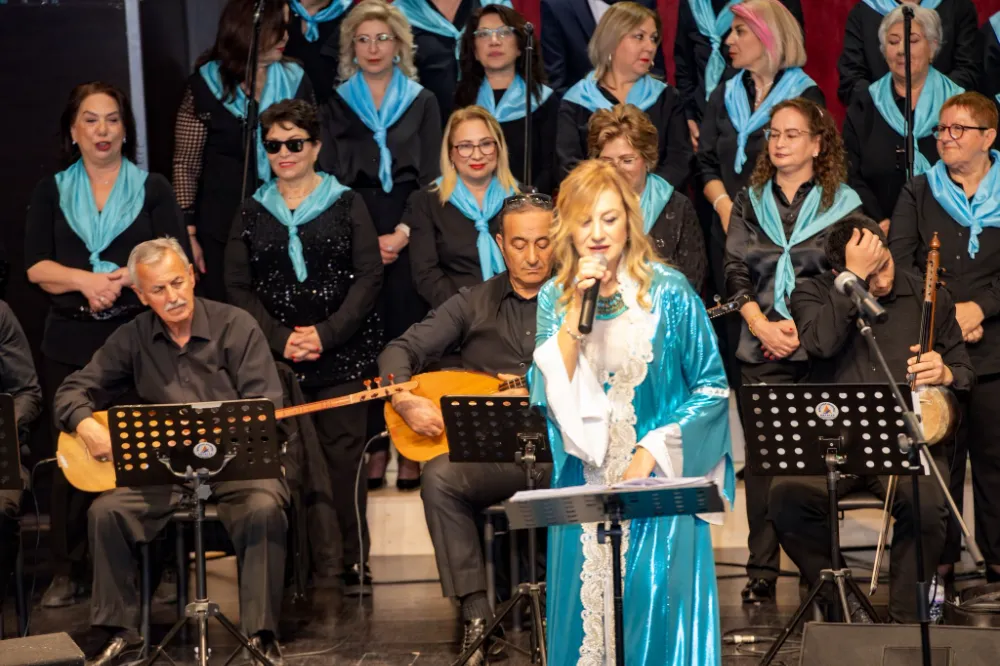 Irak Türkmen Birliği ve Dayanışma Derneği Çağdaş Türk Halk Müziği Korosu, Şef Arzu Dede yönetiminde Türkiye’nin her yöresinden ve Kerkük’ün derinliklerinden gelen unutulmaz ezgileri seslendirdi. Gecede, Armoni Müzik Grubu, Çağdaş Bendir Grubu ve Antalya Çağdaş Türk Müziği Topluluğu da güçlü performanslarıyla sahnede yer aldı. Çağdaş Bendir Grubu, ilahiler seslendirdi, seslendirdiği eserlerle gönülleri mest etti. Dinleyiciler, Türkiye’nin farklı yörelerinden türkü ve ilahiler, Kerkük’ün içli türkülerine kadar uzanan bu müzikal yolculuğa büyük bir coşkuyla eşlik etti. Irak Türkmen Birliği ve Dayanışma Derneği Çağdaş Türk Halk Müziği Korosu, salonu dolduran müzikseverlere unutamayacakları bir gece yaşattı.