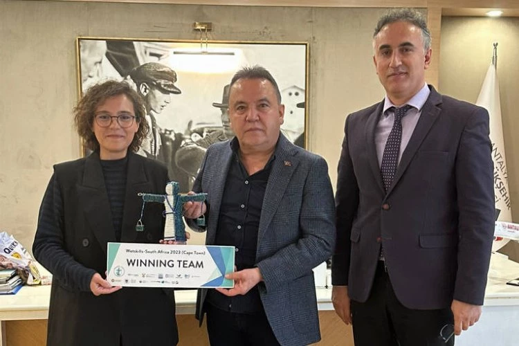 Ödül ve Antalya Büyükşehir Belediyesi’nin takım kaptanlığı yaptığı grubun birinciliğini gösteren banner, Başkan Danışmanı Lokman Atasoy ve Dr. Fulya Kandemir tarafından Başkan Muhittin Böcek’e takdim edildi. Başkan Muhittin Böcek, “11 ilimizi etkileyen deprem afeti nedeniyle zor günlerden geçtiğimiz bu dönemde dahi bilimsel çalışmalarımızdan ödün vermeden, belediyemizi ve ülkemizi en iyi şekilde temsil etmeye özen gösteriyoruz. Bir yandan yaralarımızı birlikte sarıyoruz diğer yandan da çevre, altyapı, üstyapı gibi tüm alanlarda proje ve hizmetlerimizi aksatmadan sürdürüyoruz. Çevre ve doğa dostu Antalya hedefiyle sürdürülen çalışmalarımız kapsamında Antalya Büyükşehir Belediyemizin 16. Çevre ödüllünü Güney Afrika’dan getirmenin mutluluğunu yaşıyoruz. Emeği geçen tüm arkadaşlarımı kutluyorum. Başarılarımızın devamını diliyorum” dedi.